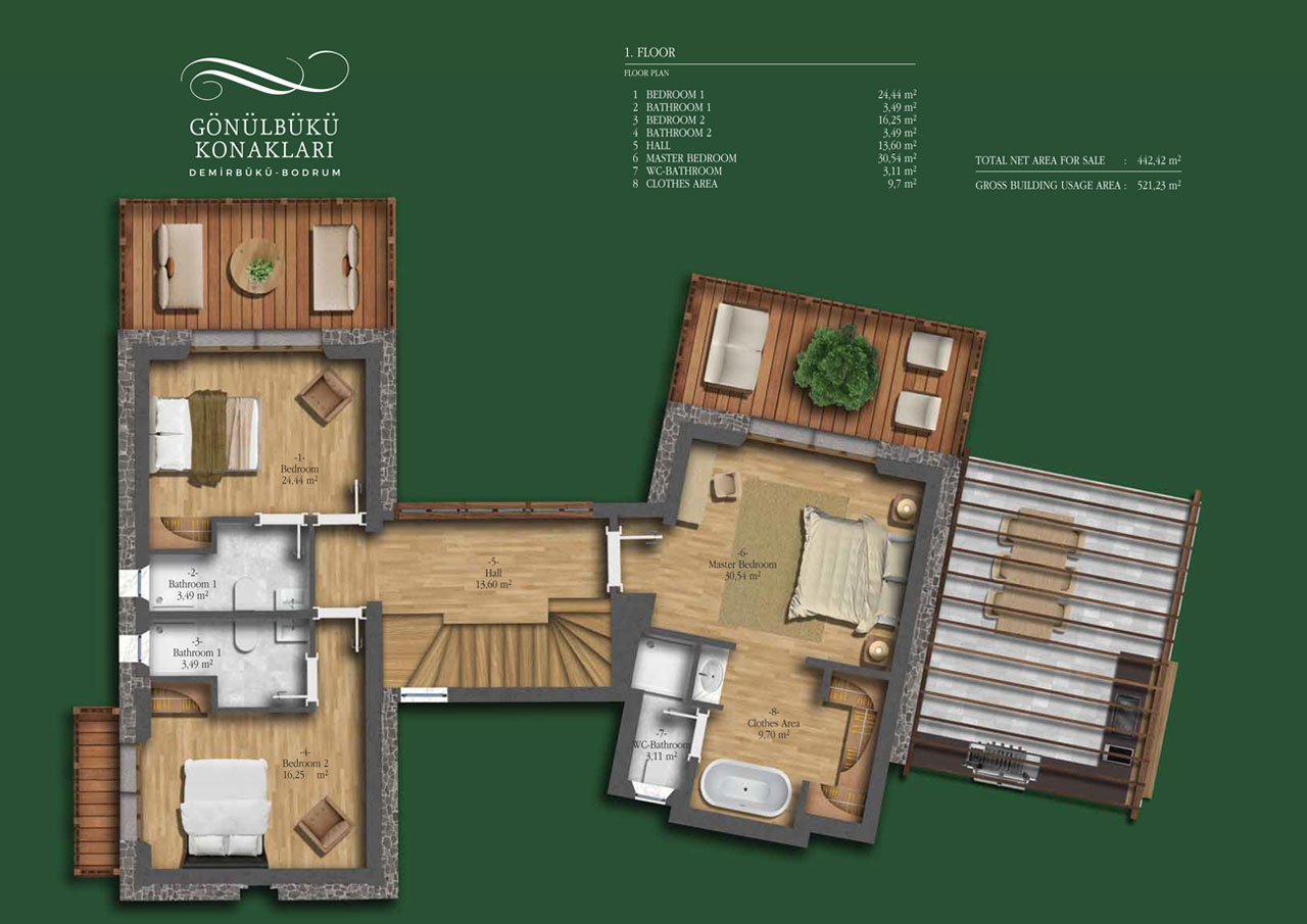 | TOTAL NET AREA FOR SALE | 442,42 m2 |